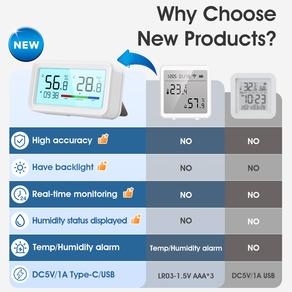 Wifi Indoor Hygrometer Thermometer Sensor With Backlight Remote App Voice Alexa Google Home Digital Tuya Smart Home Images |